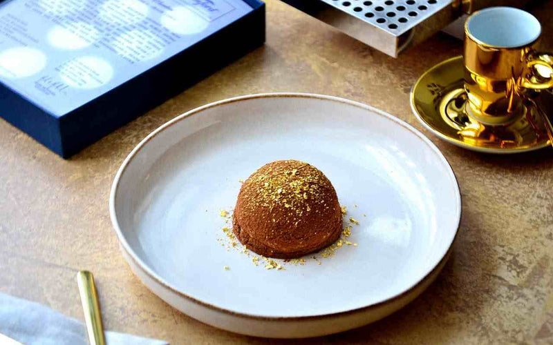 Remove the ice creams from the moulds, place each of them on top of a cake circle and dust with cocoa powder. Garnish with optional gold leaves and enjoy.